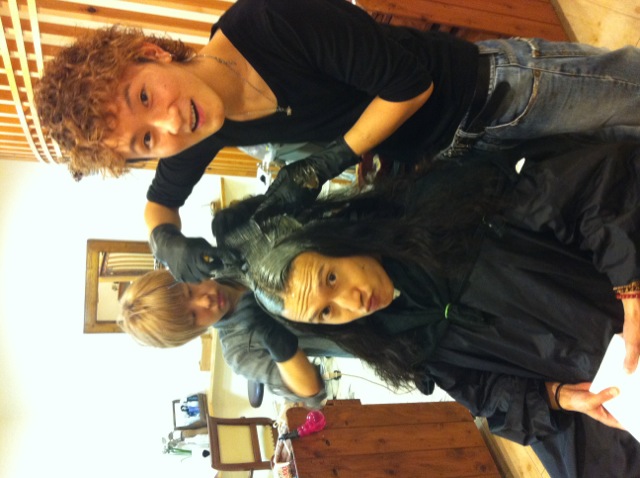 オーナー亀ちゃんみずからモデルとなり、新しいカラー剤の実験をしていました。