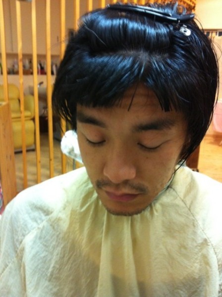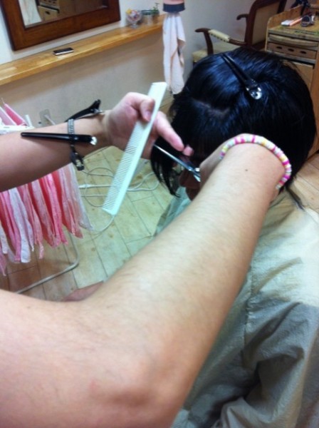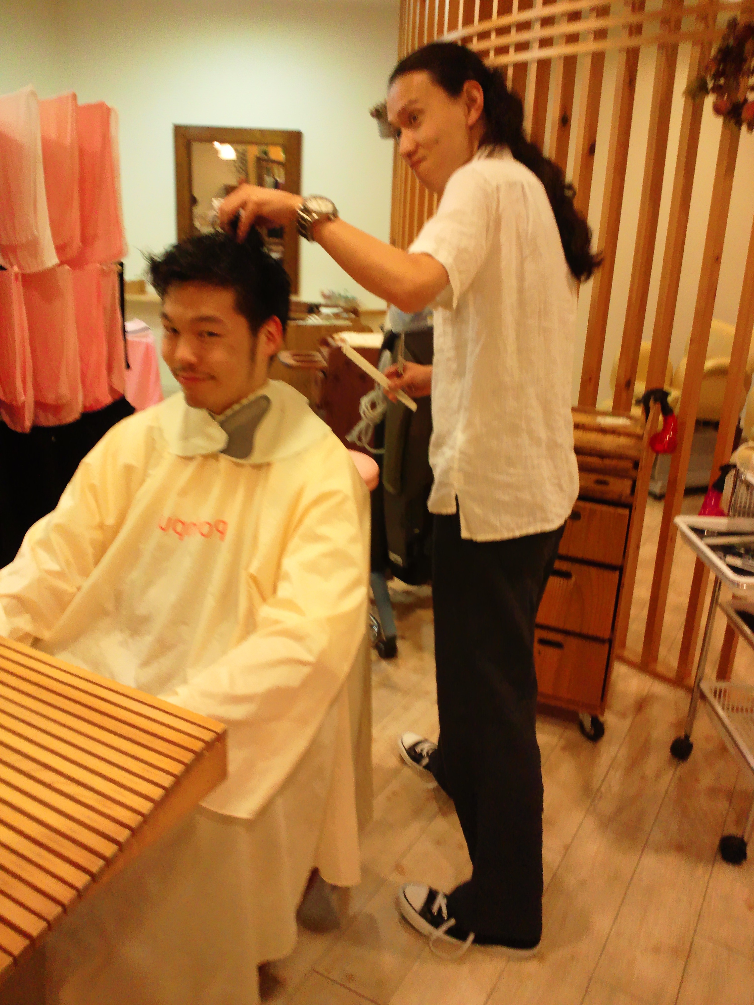 先日の出張カットに、スタッフの谷君と久保君をつれていきました。