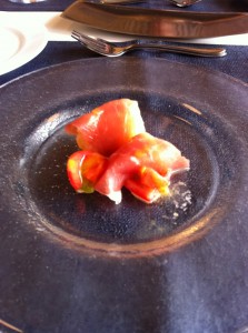 白桃の生ハム巻きー。(注!!本当はもっと素敵なネーミングです。)