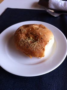 チーズとオレガノの焼き立てパン。