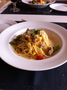 三元豚のオイルパスタ。